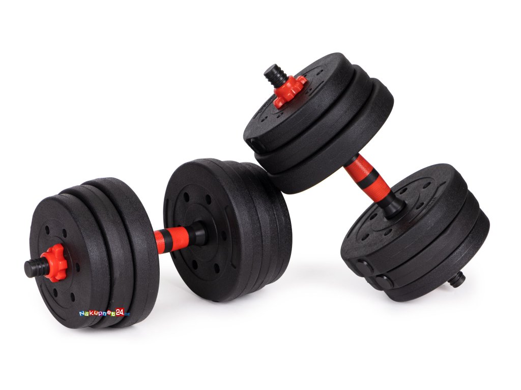 Sada dvou činek o hmotnosti 15 kg je ideální pro začátečníky. Umožňuje procvičit paže, ramena, nohy i břišní svaly.