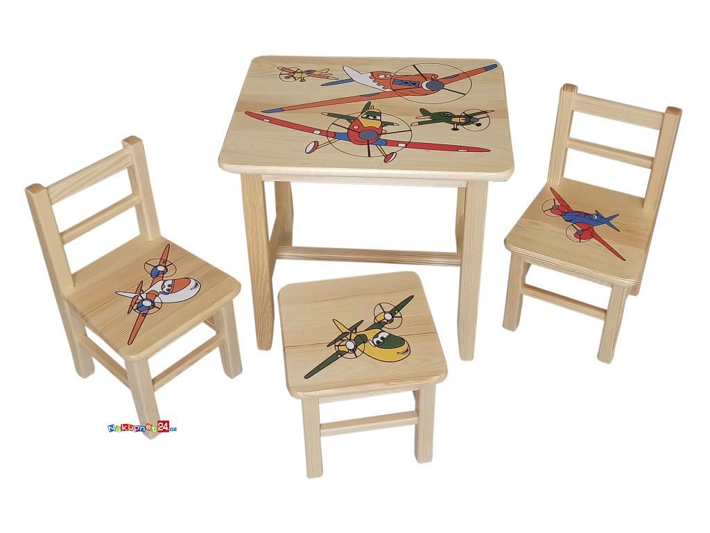 Dětský stůl ze dřeva se židličkami Letadla Vzor 21 stolička zdarma
