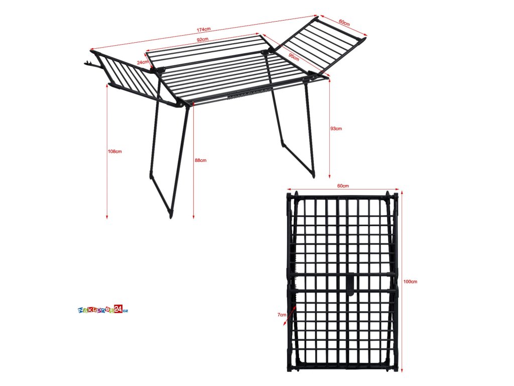 Díky promyšlené konstrukci lze sušák rychle složit a jeho kompaktní rozměry ve složeném stavu (60x7x100 cm) umožní snadné uskladnění v úzkých prostorách, jako jsou skříně, ú ložné prostory nebo výklenky. Díky tomu je ideální do menších bytů, koupelen nebo na balkony, aniž by zabíral cenné místo, když se nepoužívá.