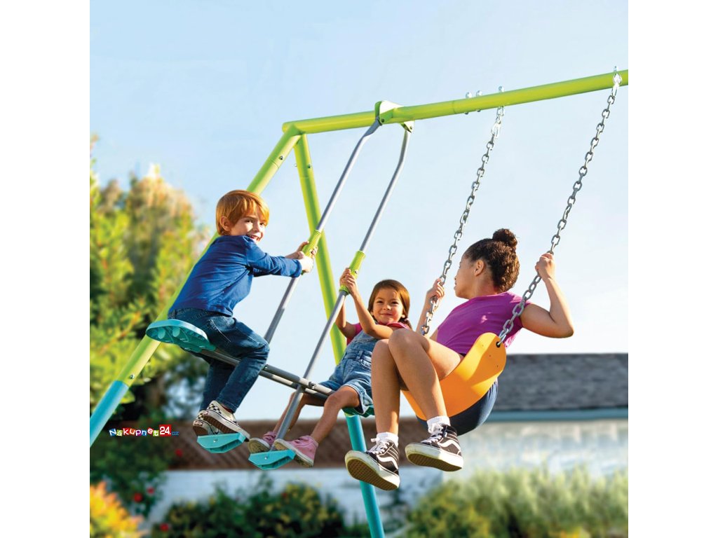 Robustní kovová konstrukce z trubek o průměru 0,60 mm a tloušťce 0,09 mm zajišťuje dlouhou životnost a stabilitu i při každodenním používání. Kotvící kolíky brání pohybu houpačky a zaručují maximální bezpečnost – rodiče mohou být v klidu, děti si mohou hrát naplno.