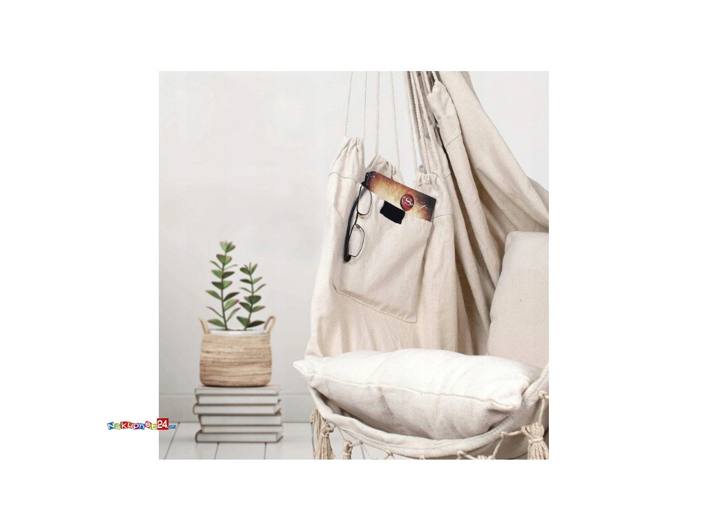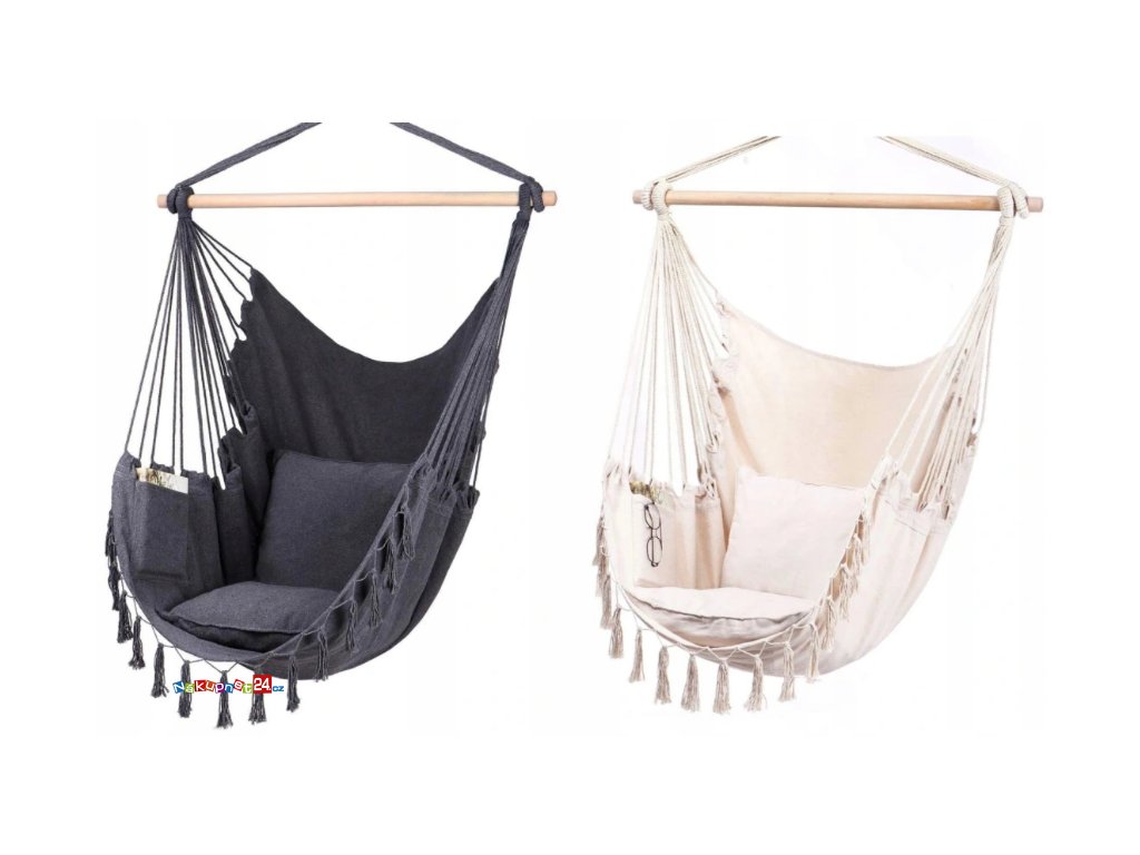 Objevte dokonalé místo k odpočinku – měkké a prostorné brazilské závěsné křeslo s praktickou kapsou a dvěma polštářky v sadě. Stylový doplněk do obývacího pokoje, na balkon nebo zahradu.