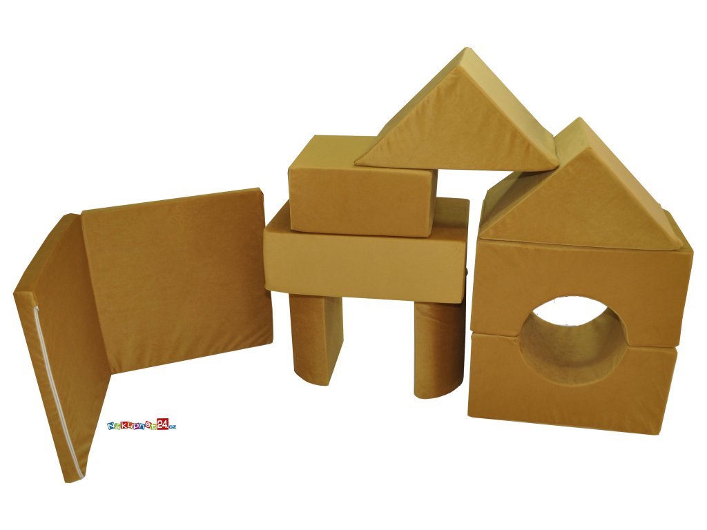 9 různých tvarů, jako jsou kostky, váleček, trojúhelníky, vykrajované kostky a půlky, matrace pro všestranné a vzrušující hraní.