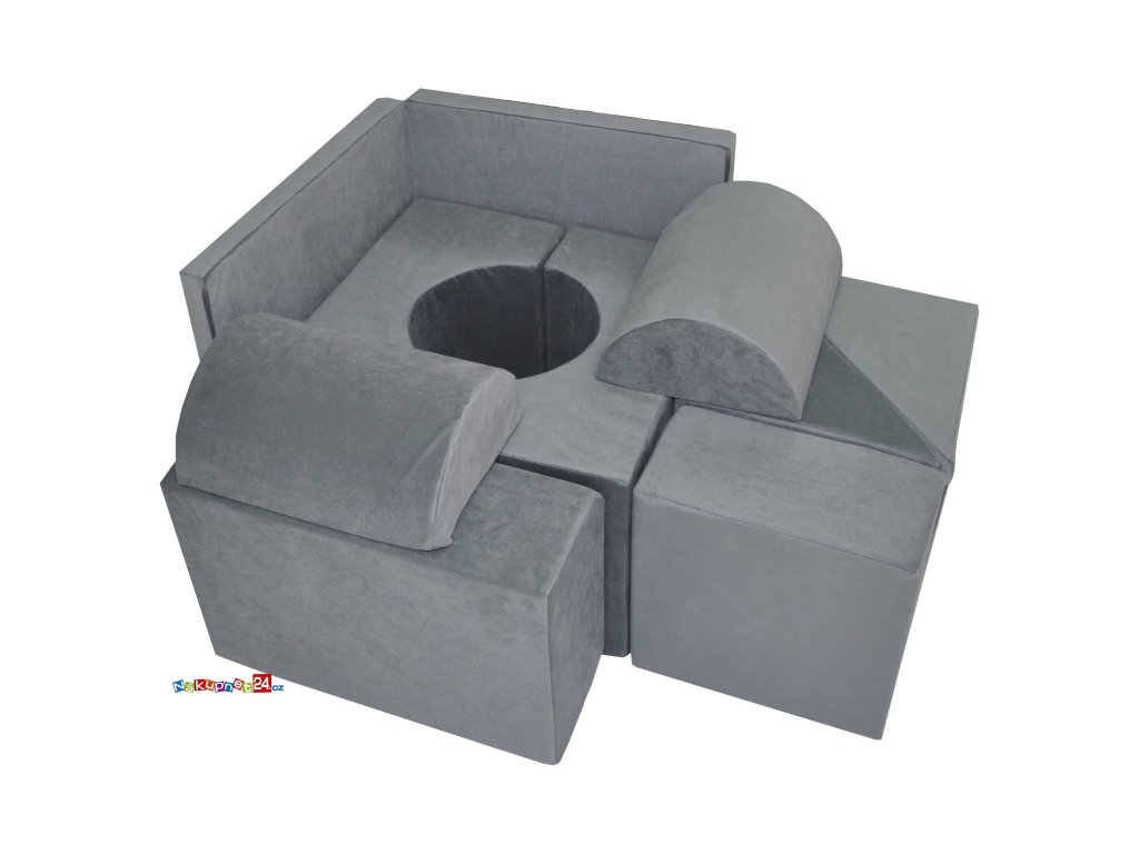 Potah každého prvku je čalouněný certifikovanou látkou, která je velmi měkká a příjemná na dotek a hlavně bezpečná pro malé děti.