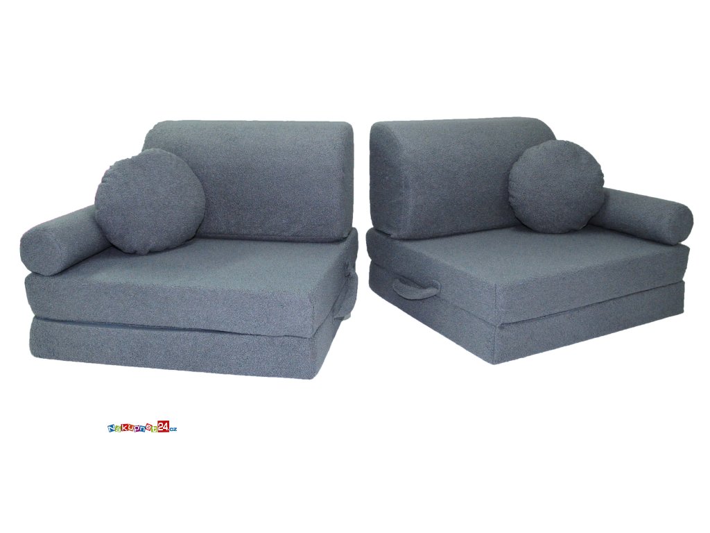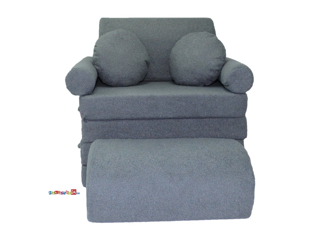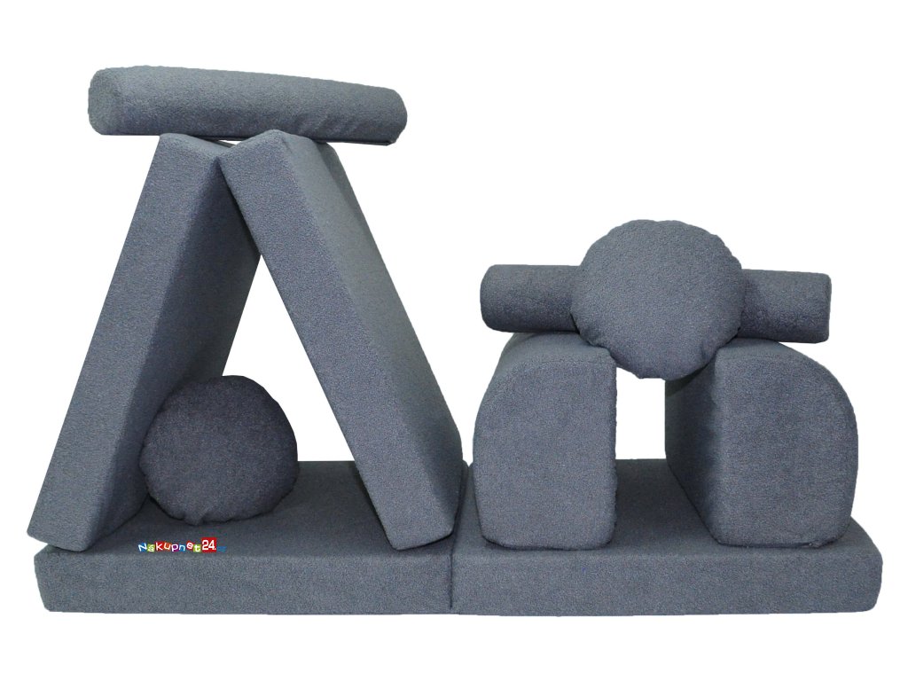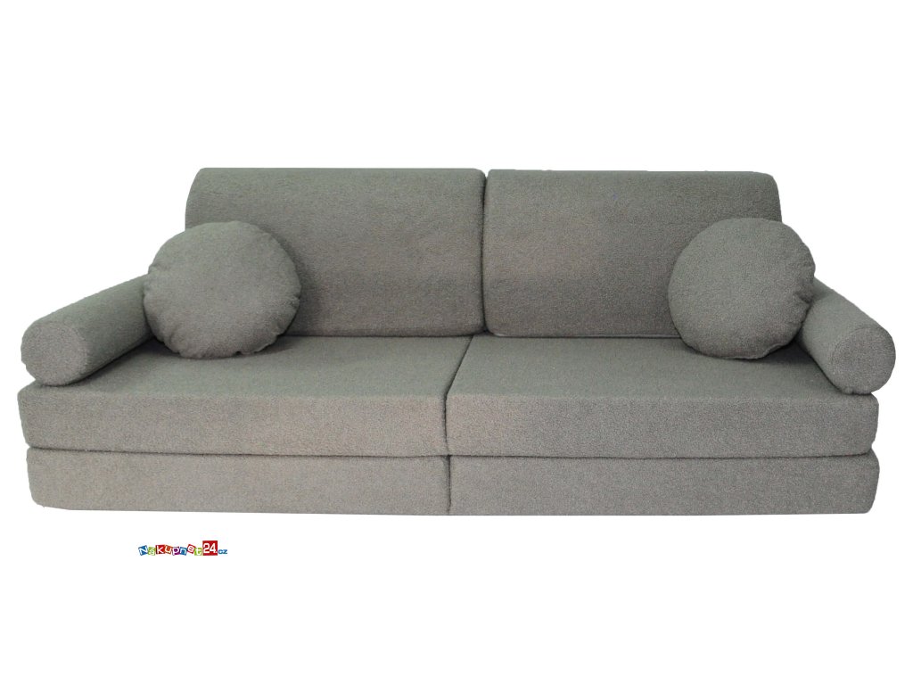 Potah pohovky je z měkké látky, která je příjemná na dotek a má moderní vazbu, dokonale ladící s dětským pokojem. Materiály jsou měkké, odolné a bezpečné pro děti všech věkových kategorií.