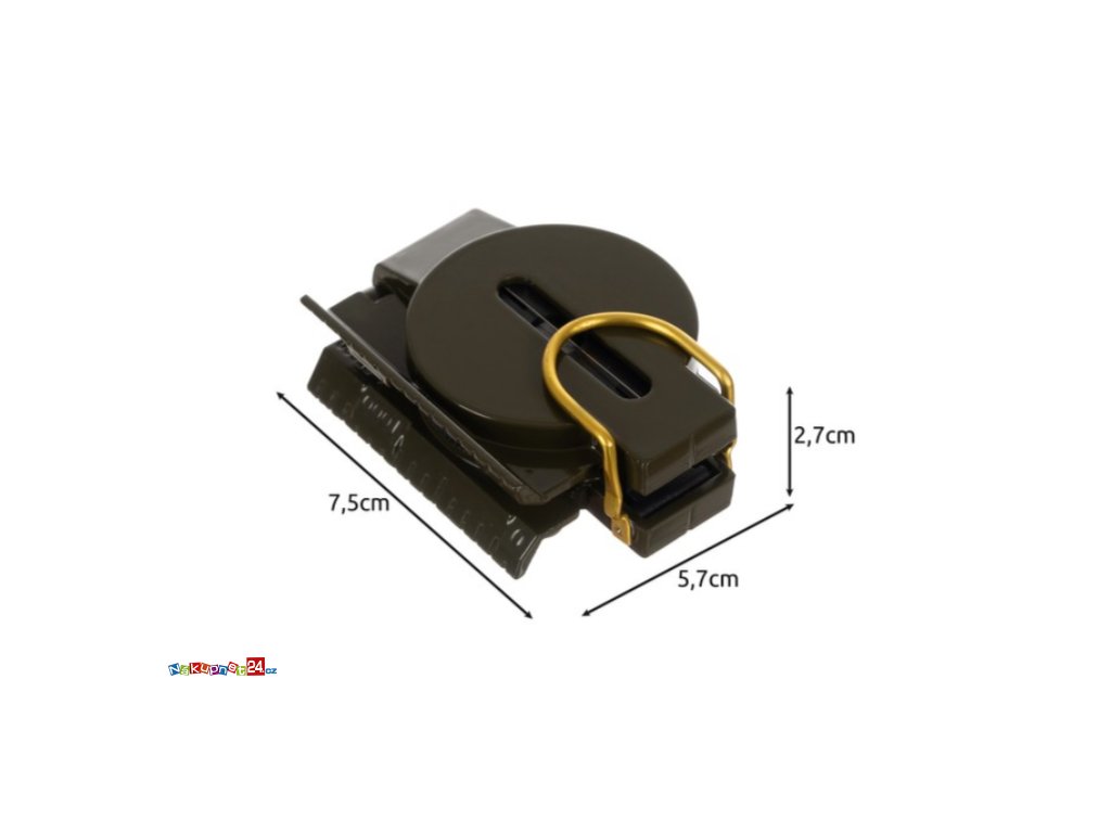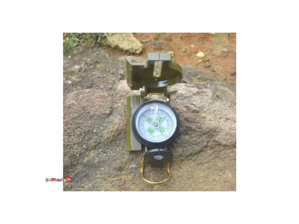 - DOPLŇKOVÝ ZAMĚŘOVACÍ PŘÍSTROJ - Kompas má scimitar a tenkou linku, která funguje jako motýlek. Pod žezlem je malá lupa, která usnadňuje odečítání přesného úhlu z číselníku kompasu. Pouzdro kompasu se dále skládá z víka, v němž je podlouhlý otvor, jehož středem prochází napnutá tenká čára. uvnitř kompasu je zaměřovač.