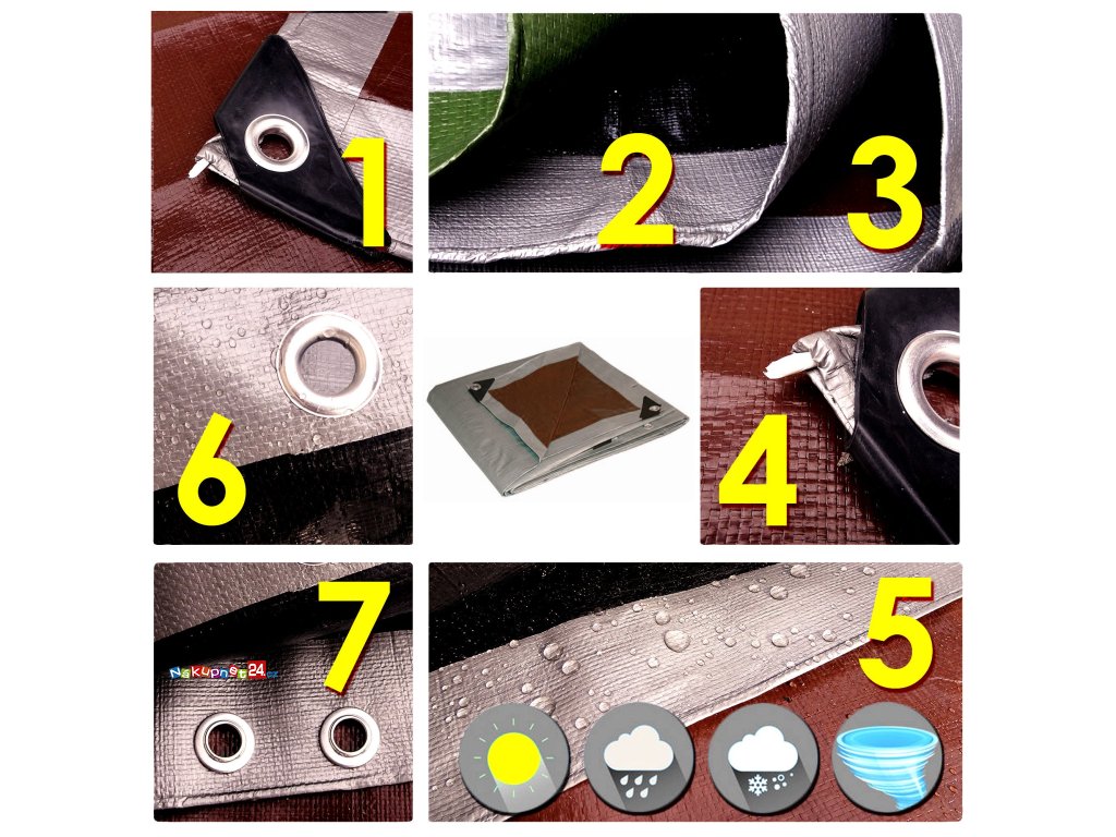 Odolná krycí plachta vyrobená z polypropylenu s oboustrannou laminací polyetylénem. Chrání před deštěm, sněhem, větrem a UV zářením. Stříbrný povrch pomáhá snižovat zahřívání prostoru pod plachtou. Vhodná pro celoroční použití.