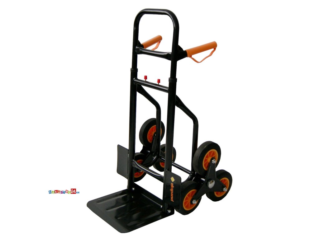 Schodišťový vozík WM01 díky 6-kolové konstrukci zajišťuje pohodlný a plynulý transport zboží. Odolný, funkční a univerzální – ideální pro přepravu nákladů po rovných plochách i schodech.