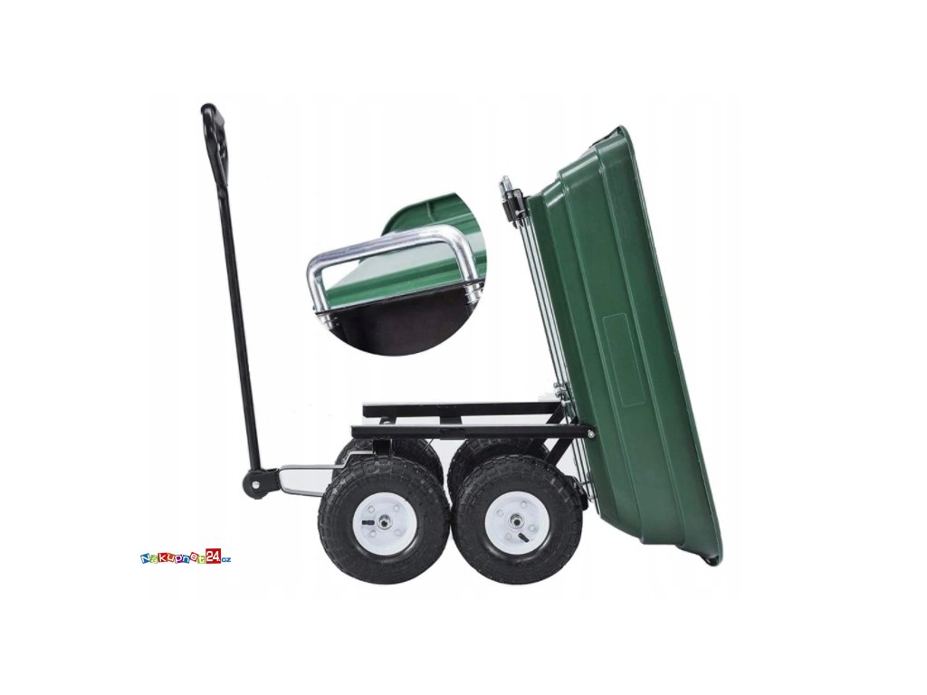 Určený pro přepravu zahradního nářadí, zeminy, nářadí nebo listí. Je dokonalým pomocníkem pro zahradní práce a úkoly. Prezentovaný zahradní sklápěcí vozík se vyznačuje pevnou a stabilní konstrukcí.