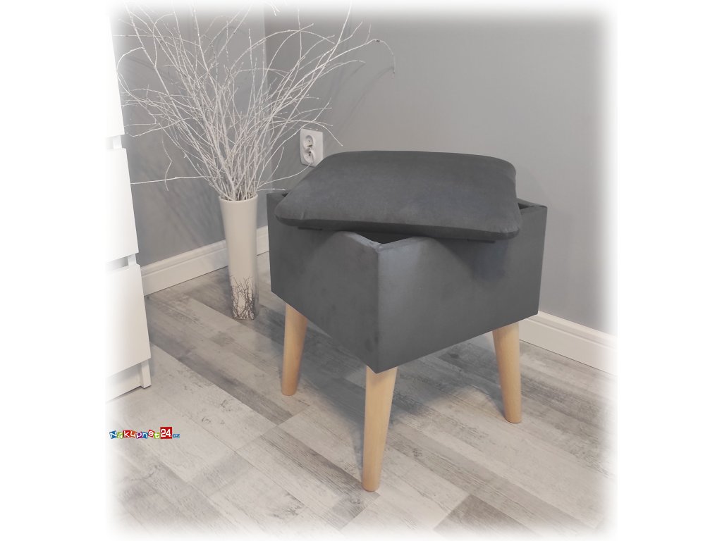 Skandinávský taburet s úložným prostorem Glamour Riviera 1 barva grafitová