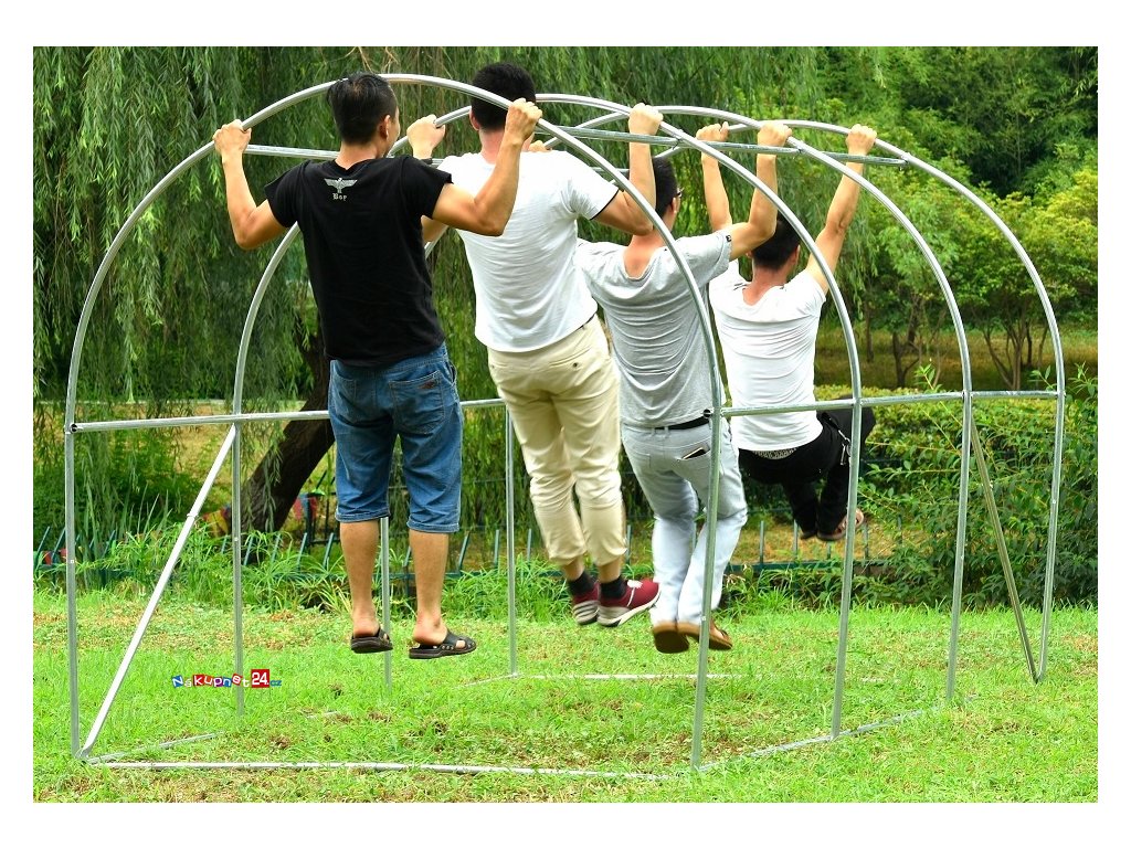 POUZE NÁŠ rám je vyroben ze silných ocelových profilů fi 25 mm tvořících 4 sekce, vyztužených 6 nosníky, které zajišťují stabilitu celé konstrukce a vysokou odolnost.