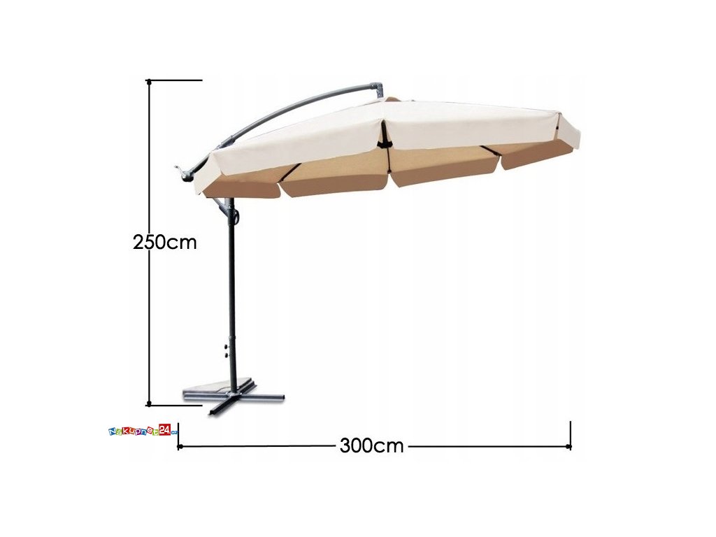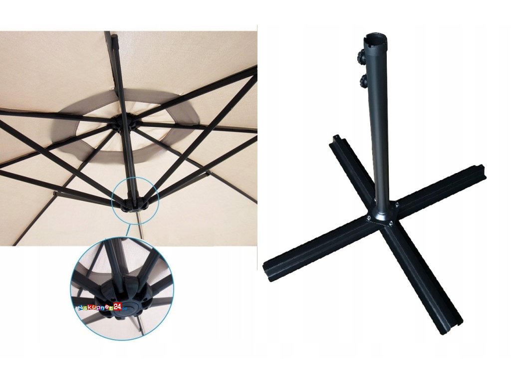 Slunečník je vyroben z odolného polyesteru (180 g/m²) s ochranou proti UV záření. Pevná konstrukce s 8 segmenty zajišťuje vyšší stabilitu než běžné modely.