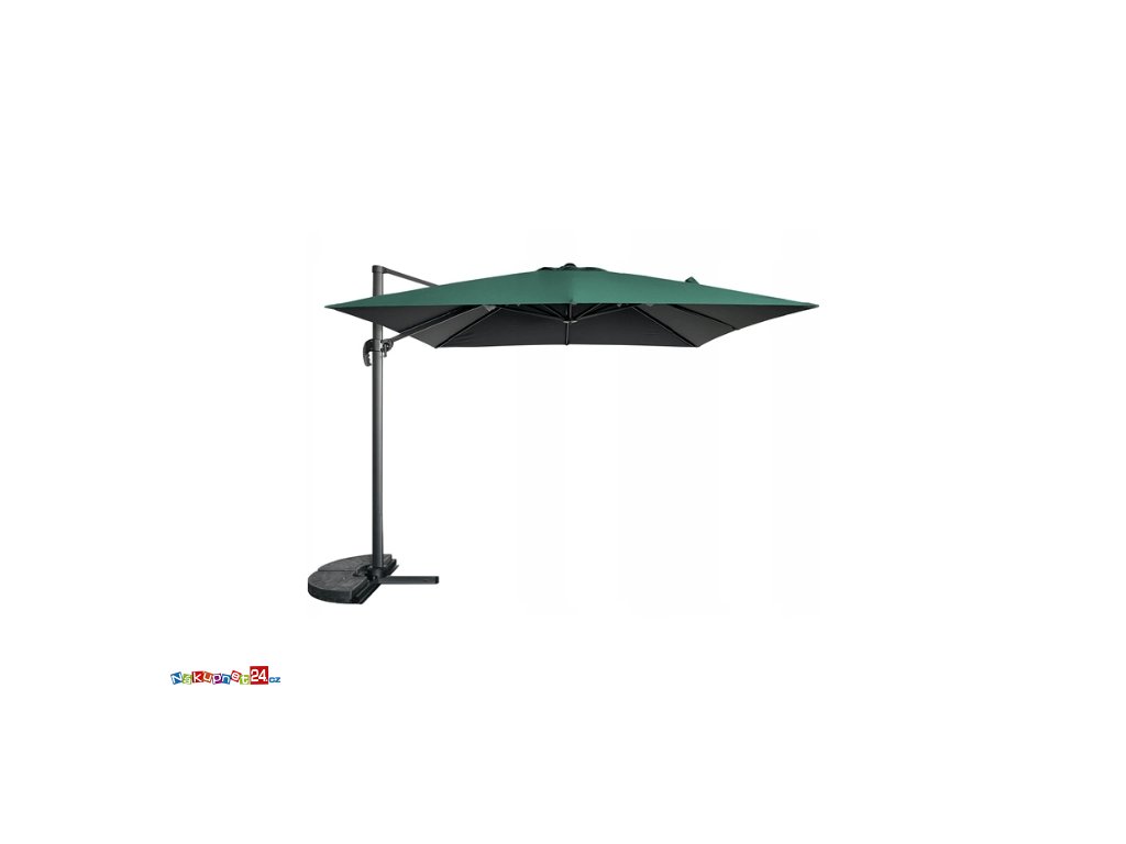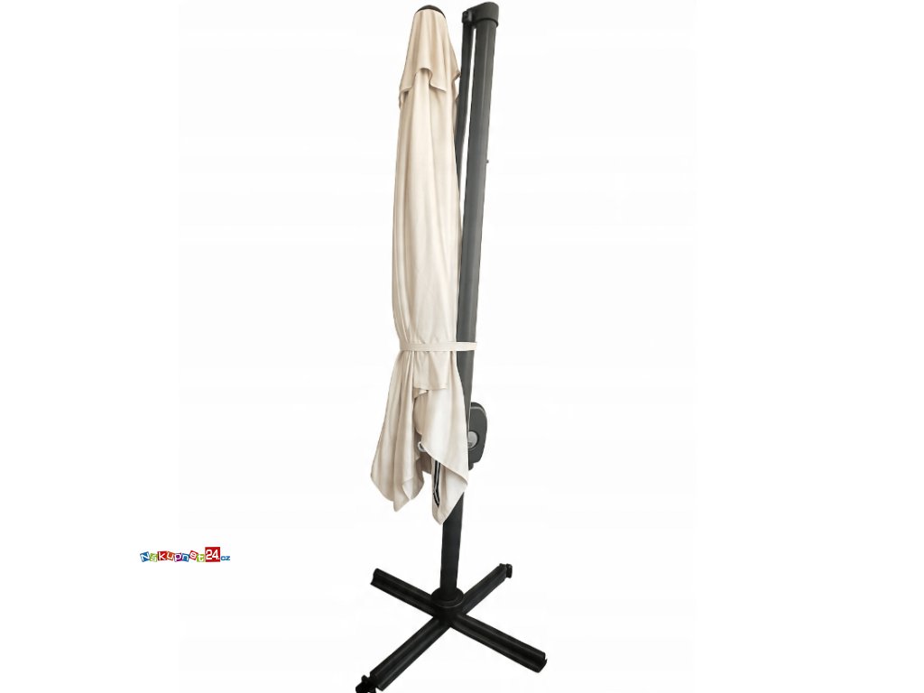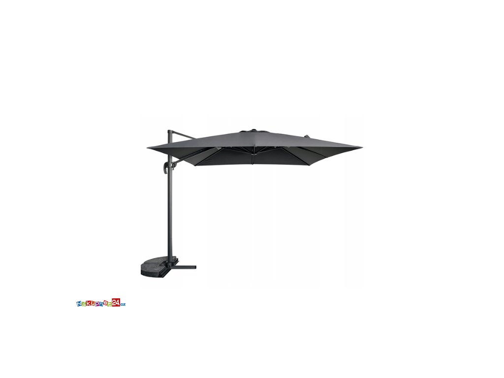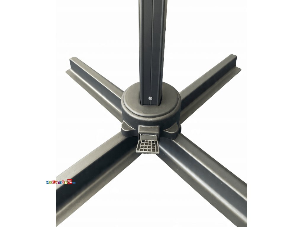 Slunečník je vybaven kovovou křížovou základnou s pedálem pro snadné otáčení do stran. Konstrukce umožňuje jednoduché nastavení směru stínění.