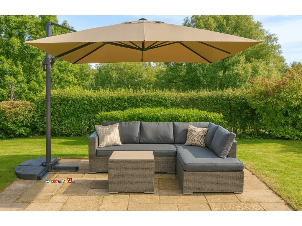 Zahradní hliníkový slunečník ROMA s bočním ramenem – 300 cm, béžový, velký