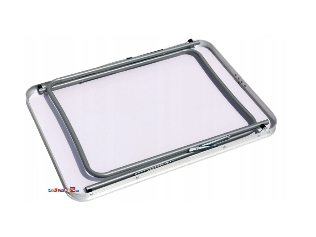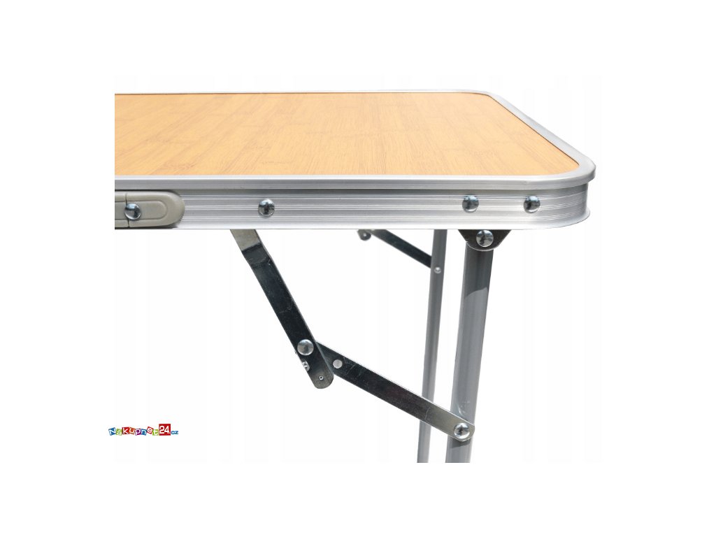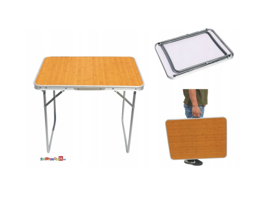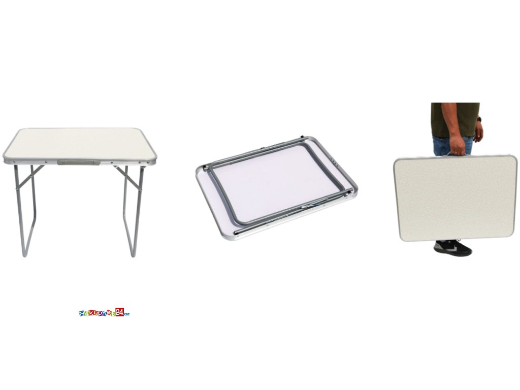 Nohy stolu lze pohodlně složit dovnitř do kufru a díky pohodlnému madlu se snadno přenáší. Speciální pojistka nohou zabraňuje náhodnému sklopení stolu. Díky malým rozměrům se stolek snadno vejde do kufru auta nebo do skříně.